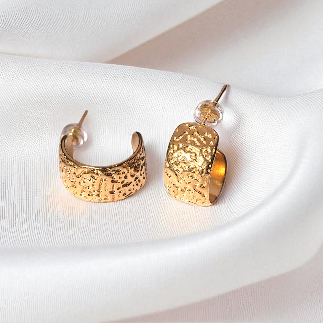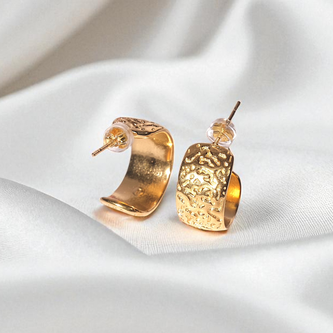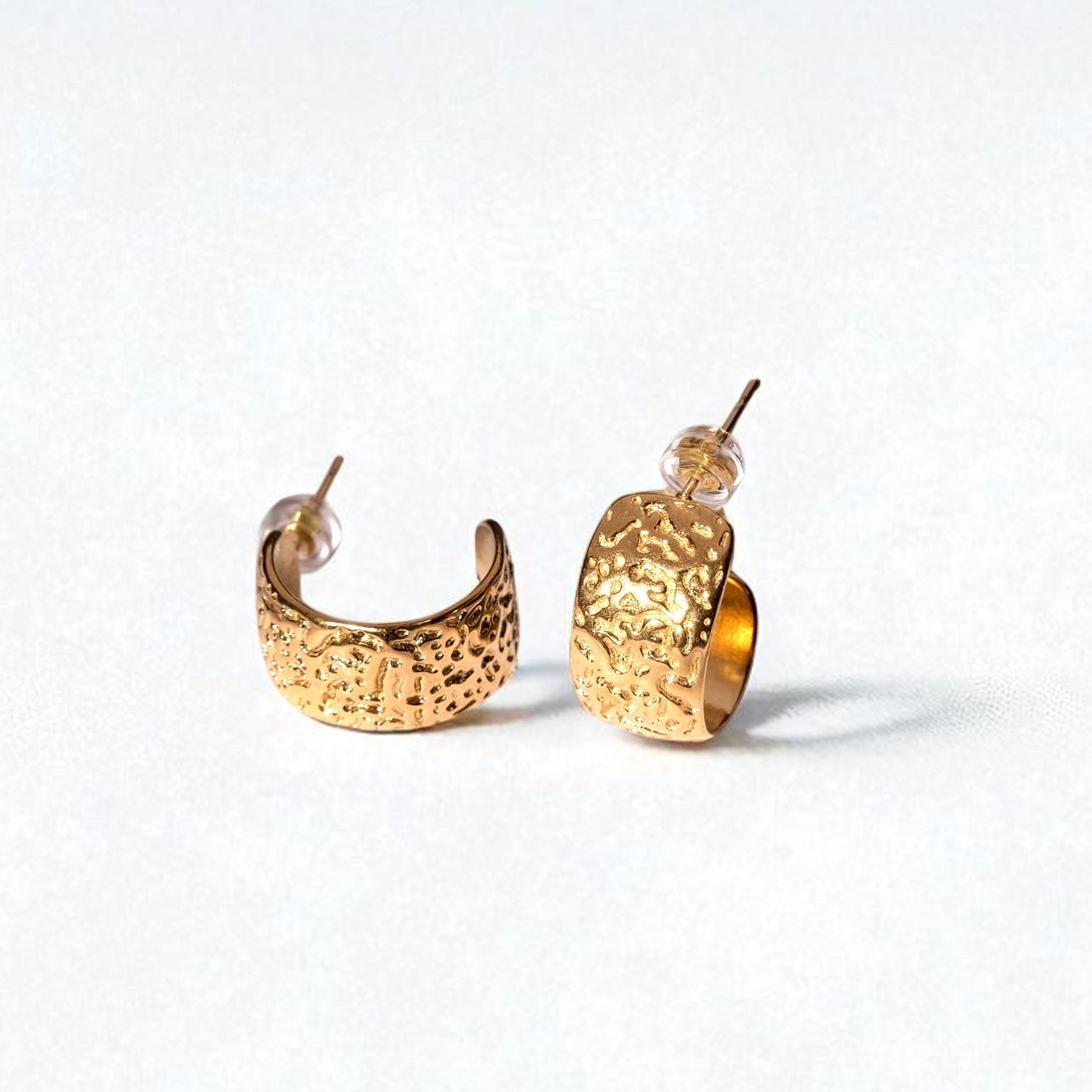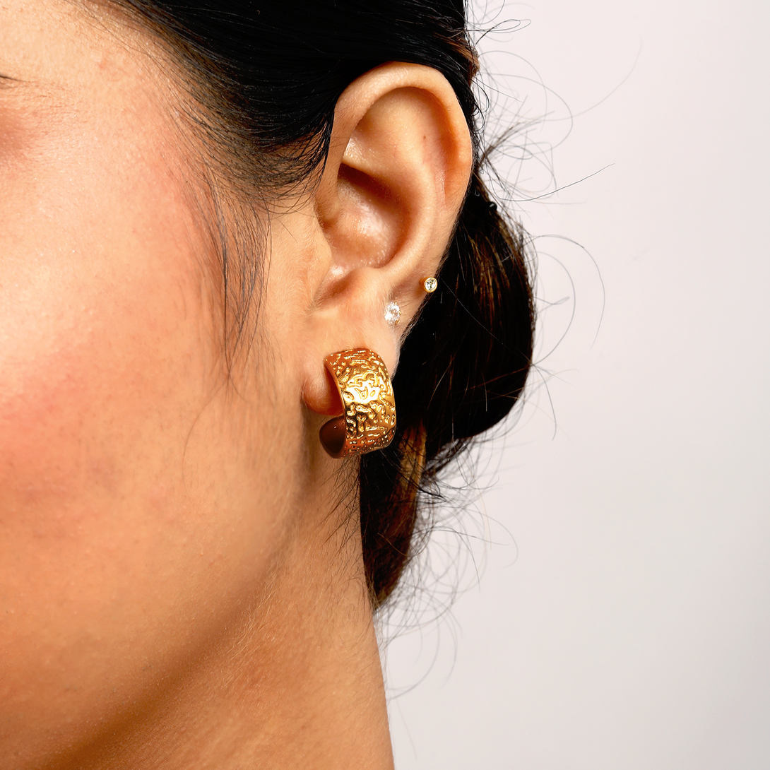 Get the curated ear look, effortlessly. These textured C-shape cuffs hug your ear in style. Crafted to be waterproof, hypoallergenic, and gentle on skin, their durable 18K PVD plating means you can wear them from the gym to the shower, worry-free.
