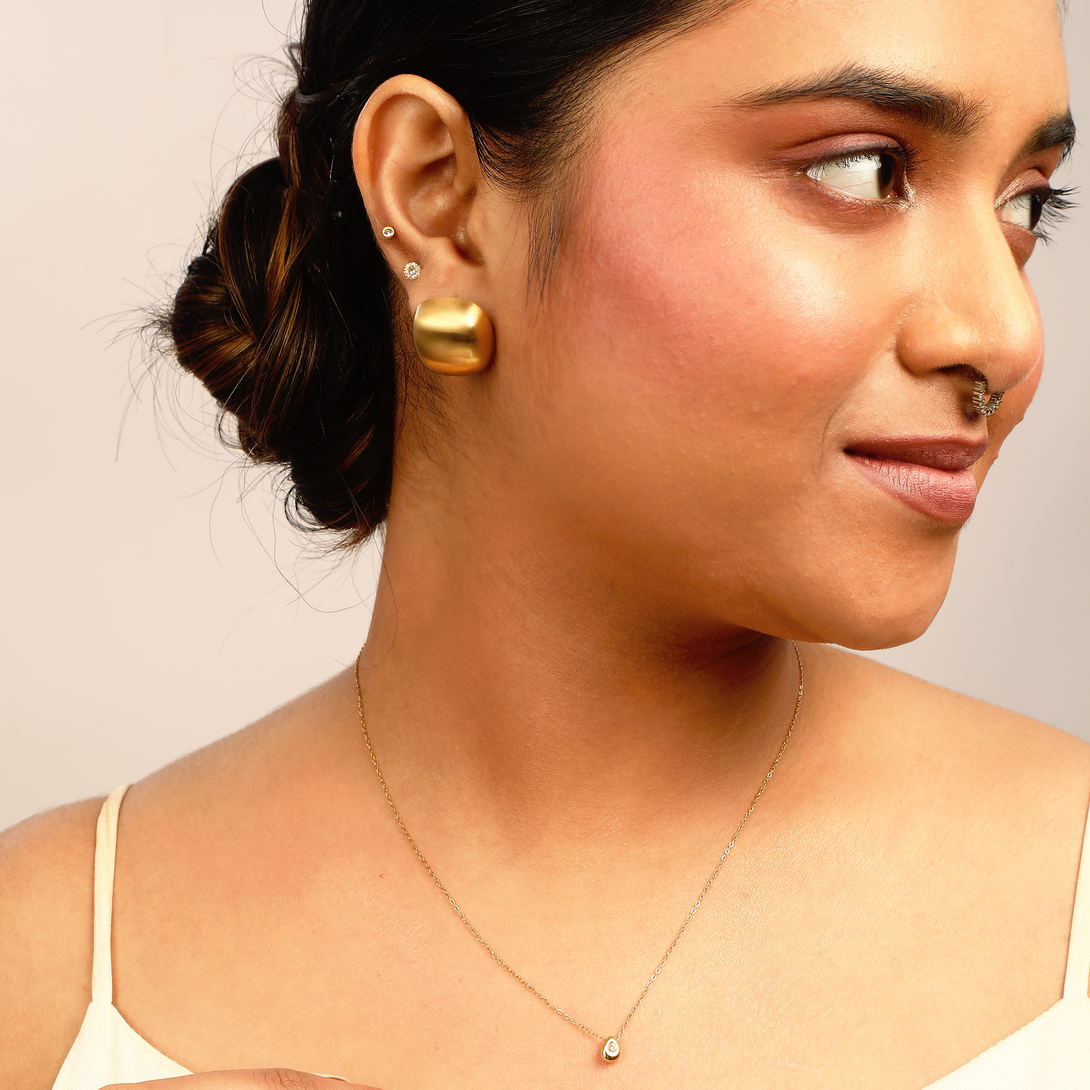 Understated chic with a modern matte finish. These minimalist square studs are the ultimate everyday accessory. They are completely waterproof, hypoallergenic, and so lightweight and skin-safe you can wear them non-stop without irritation.