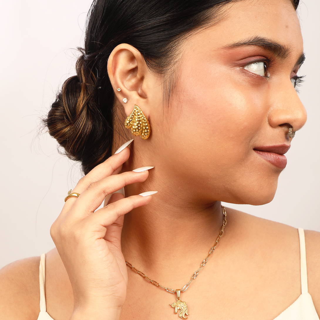 Elegant, organic style meets modern durability. These hammered waterdrop earrings catch the light beautifully. Designed for sensitive ears, they are skin-safe, hypoallergenic, and waterproof, with an 18K PVD plating that ensures a lasting, tarnish-proof shine.