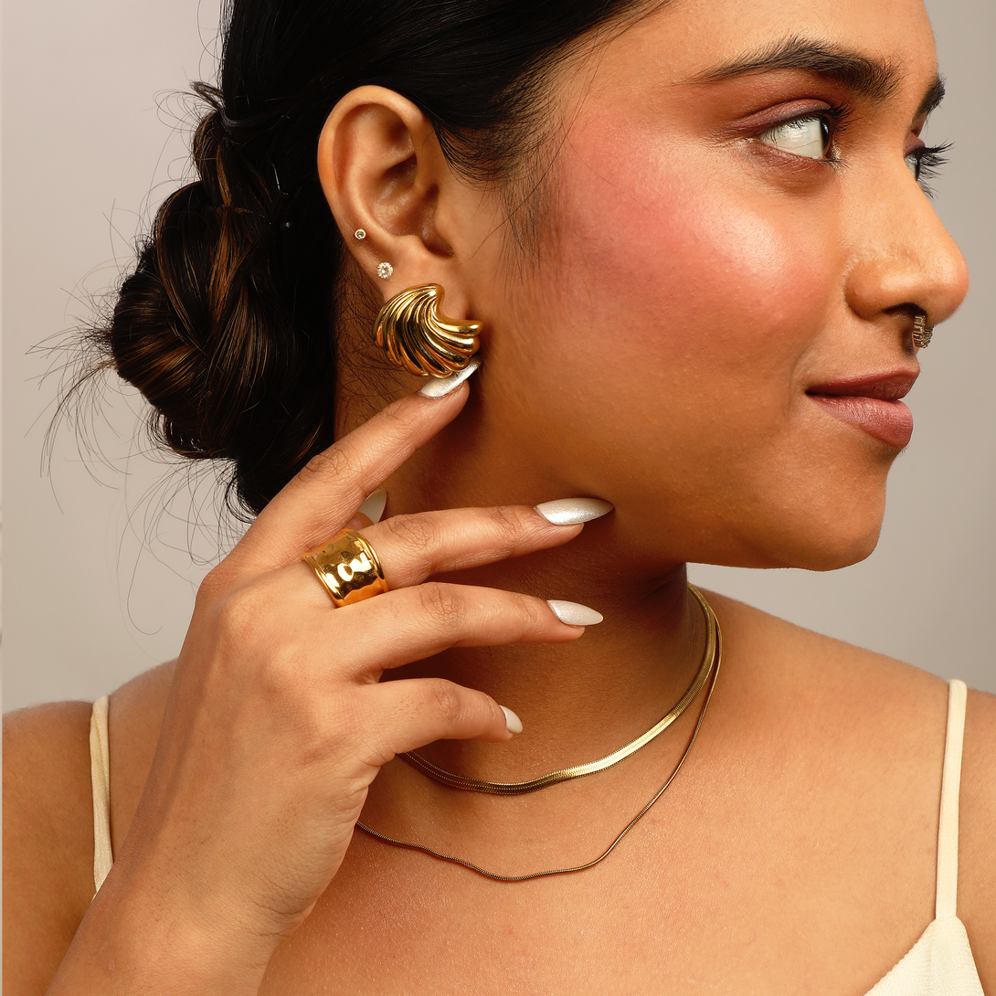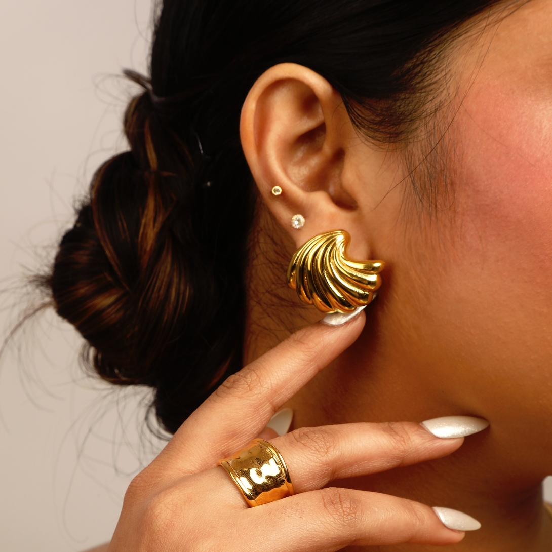 The ultimate head-turners for any event. These luxe statement earrings are designed to be surprisingly lightweight and comfortable. Being waterproof and hypoallergenic, you can dance the night away worry-free, knowing their skin-safe 18K PVD plating will not fade.