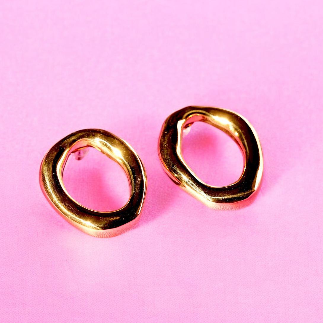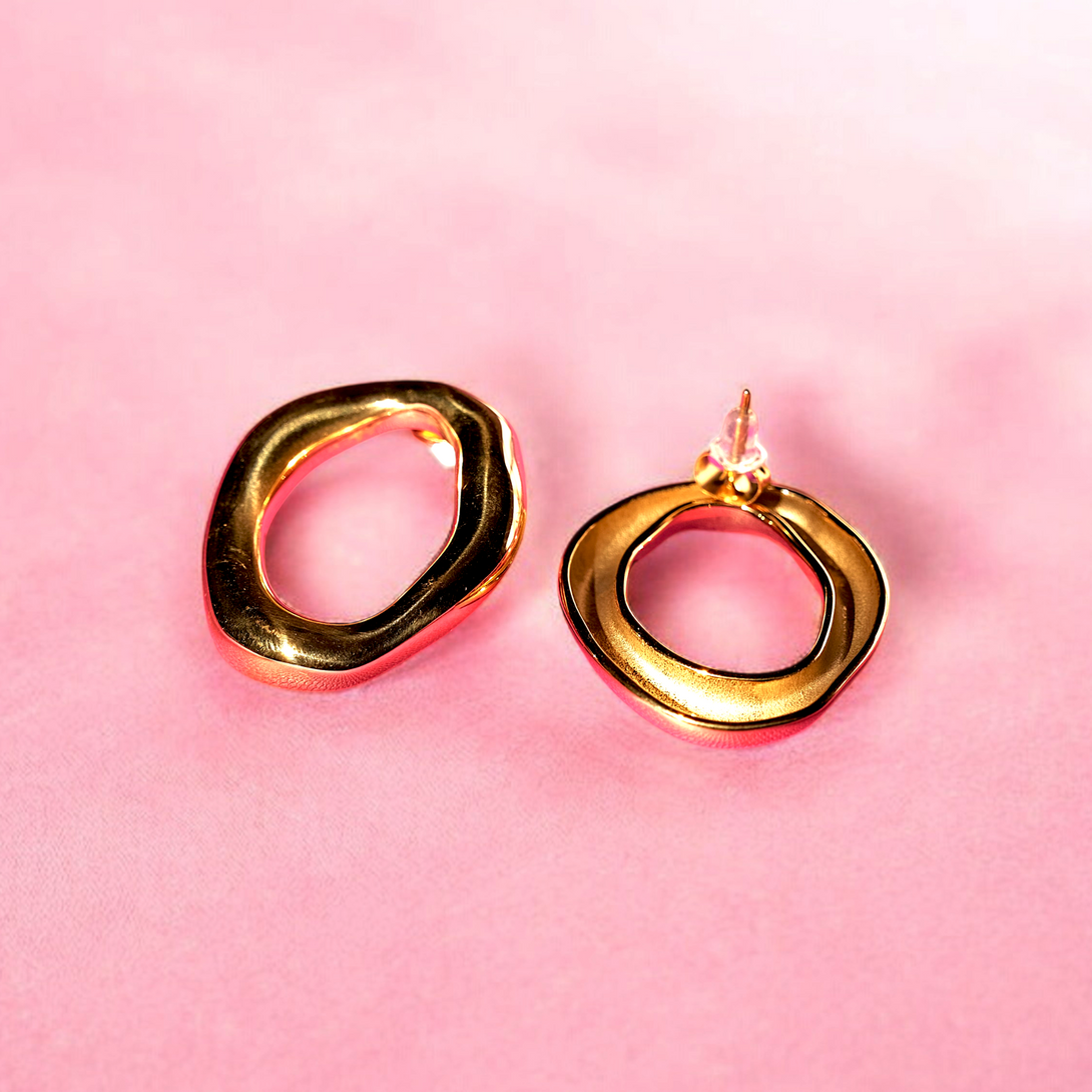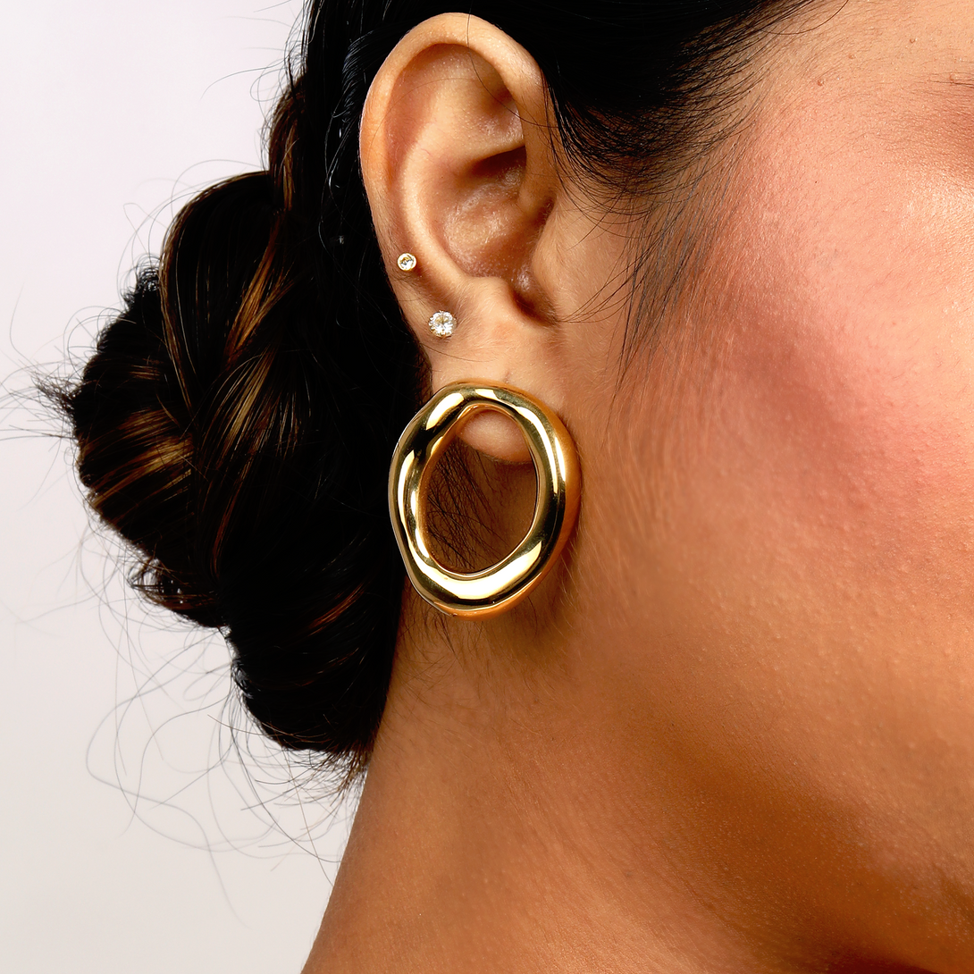 Perfectly imperfect, modern art for your ears. These irregular hollow earrings offer a unique, stylish look. They are crafted to be waterproof, hypoallergenic, and gentle on sensitive skin, with a resilient 18K PVD plating that won't tarnish.