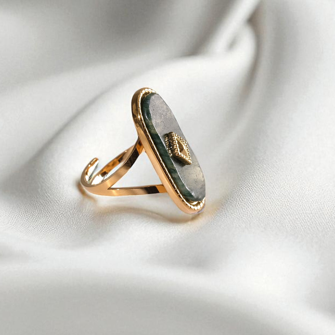 Capture the perfect summer vibe with this boho natural stone ring. Designed for beach days and beyond, it’s completely waterproof, hypoallergenic, and skin-safe. The durable 18K PVD plating protects its vibrant, beachy look, so you can swim and explore worry-free.