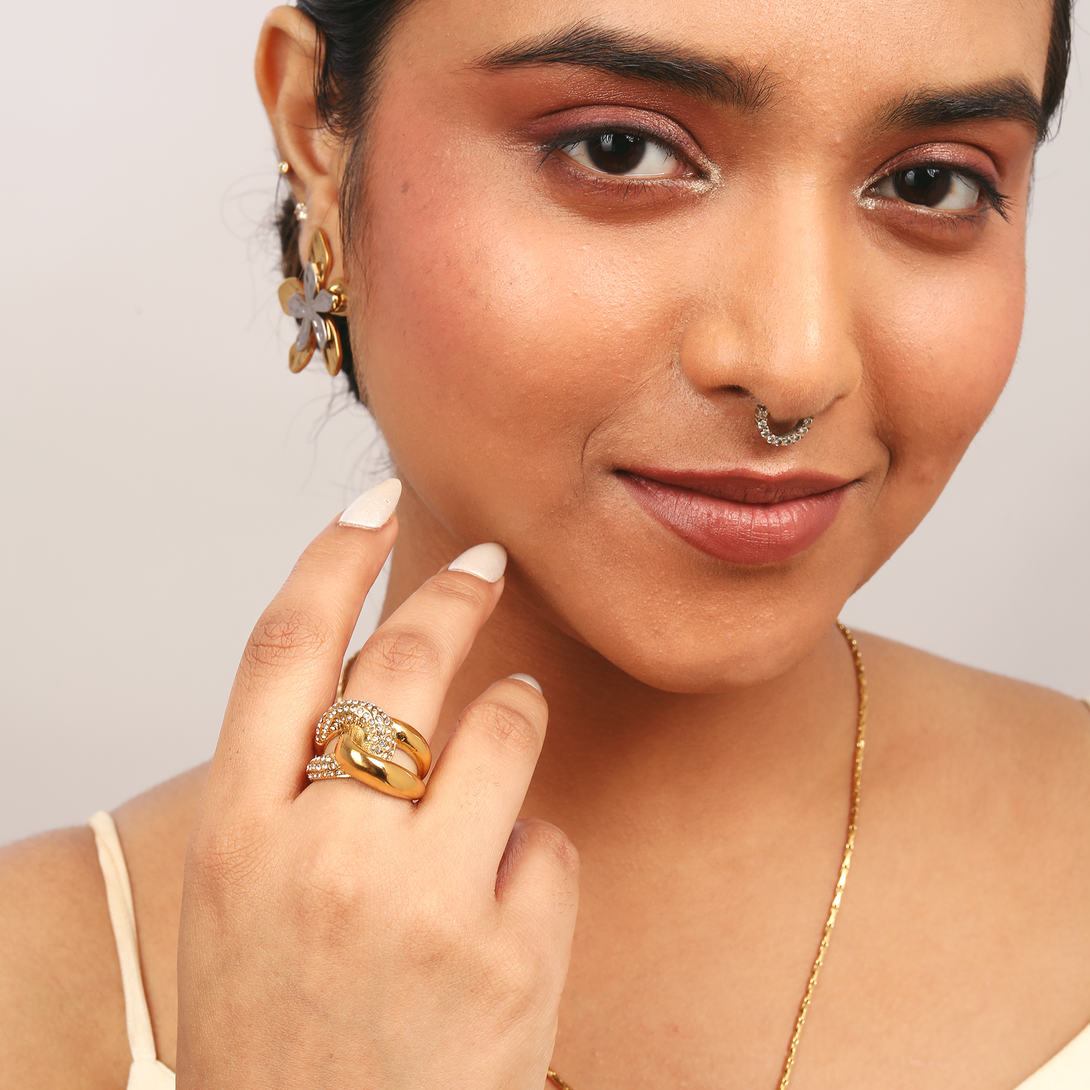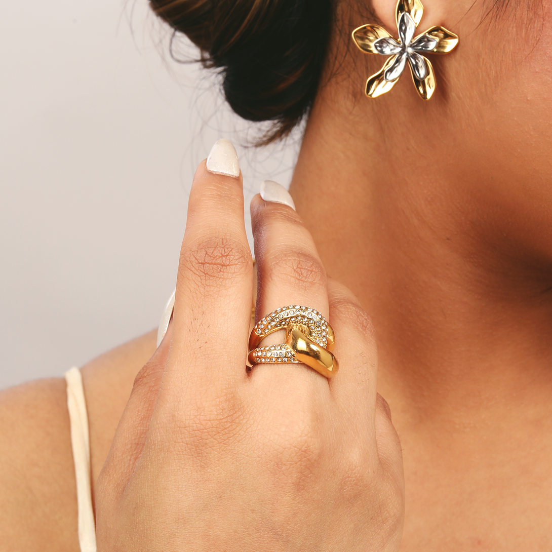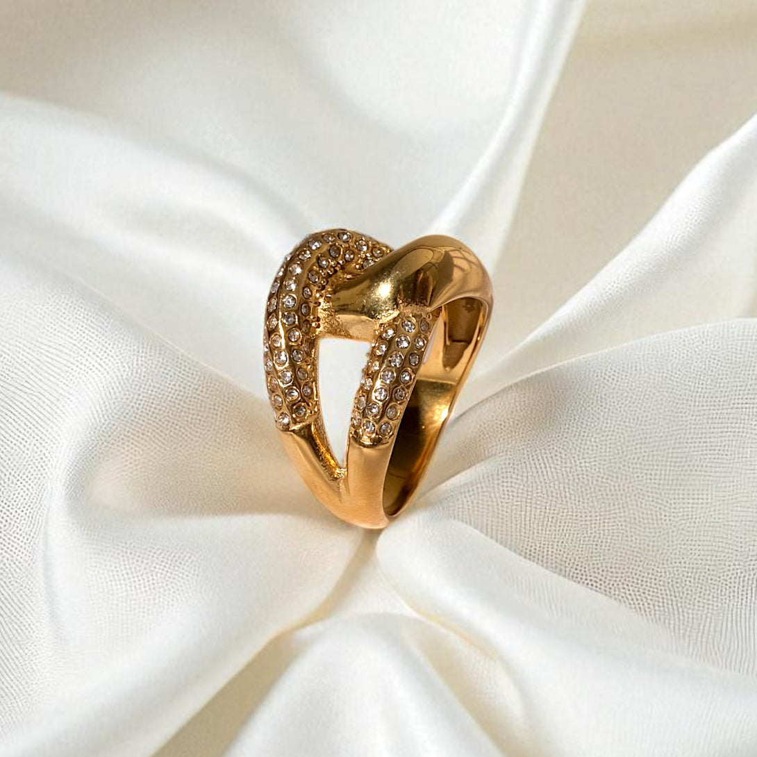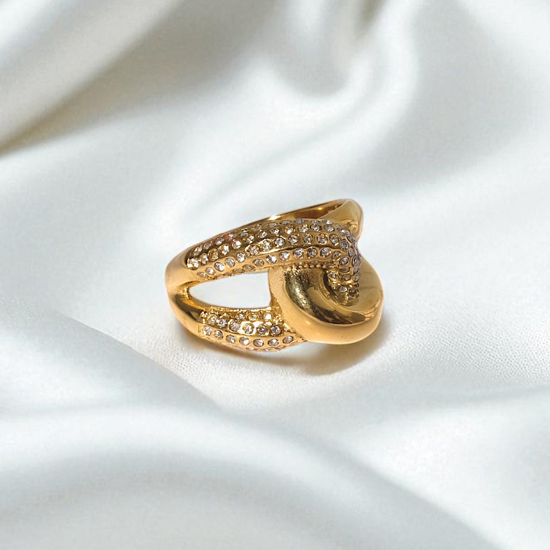 An elegant, cross-knotted design with a touch of brilliant Zircon sparkle. Made to be cherished and worn daily, it’s waterproof, hypoallergenic, and skin-safe. The resilient 18K PVD plating protects its shine through everything.
